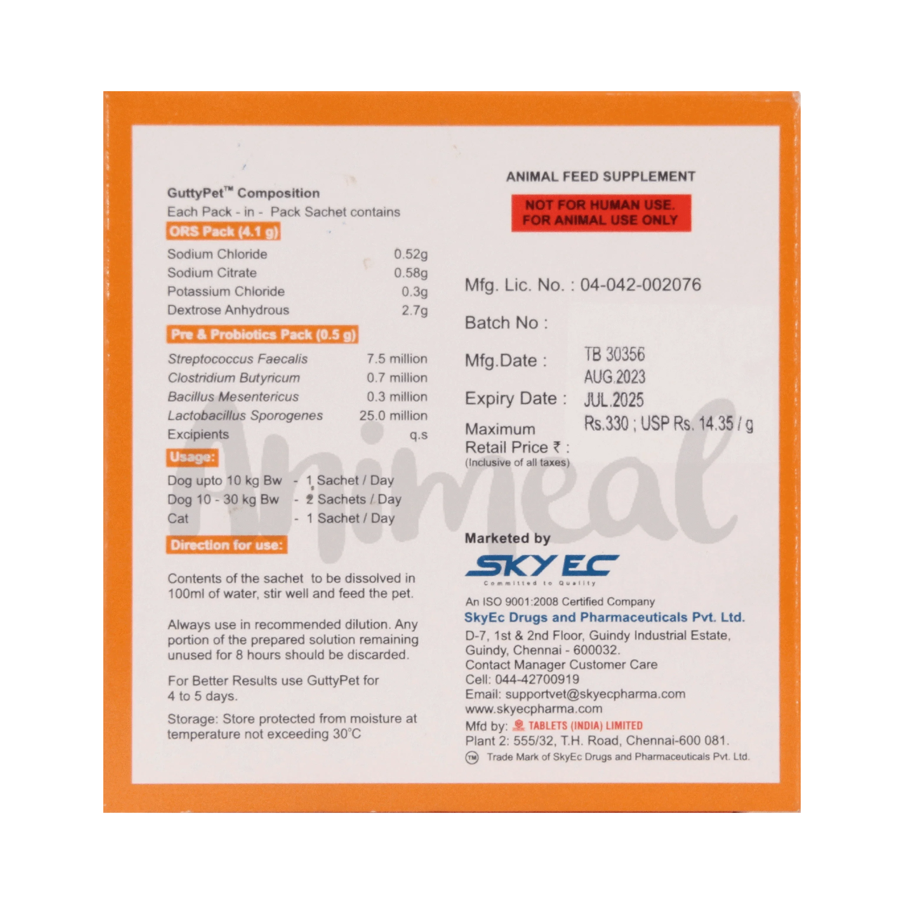 GUTTYPET POWDER, a premium supplement from SKY EC, is specially formulated for the digestive health of your beloved pets, dogs and cats. This powder supplement is an essential addition to your pet's diet, ensuring a healthy gastrointestinal tract. Animeal is proud to offer GUTTYPET POWDER, aligning with our commitment to providing top-quality pet health products.